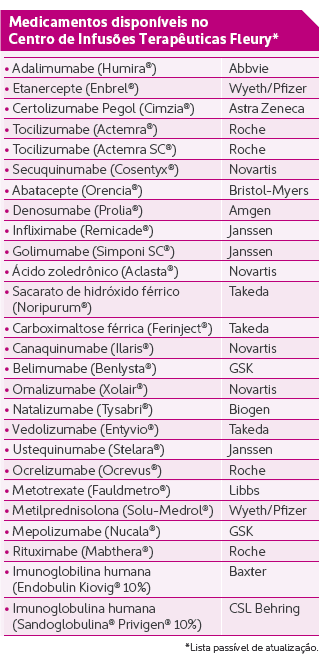Procurando ampliar a oferta de serviços de saúde a médicos e pacientes, o Fleury criou um espaço próprio para infusão subcutânea e intravenosa de medicamentos imunobiológicos e de outros agentes farmacológicos usados, sobretudo, no tratamento de doenças autoimunes e inflamatórias, assim como em imunodeficiências.