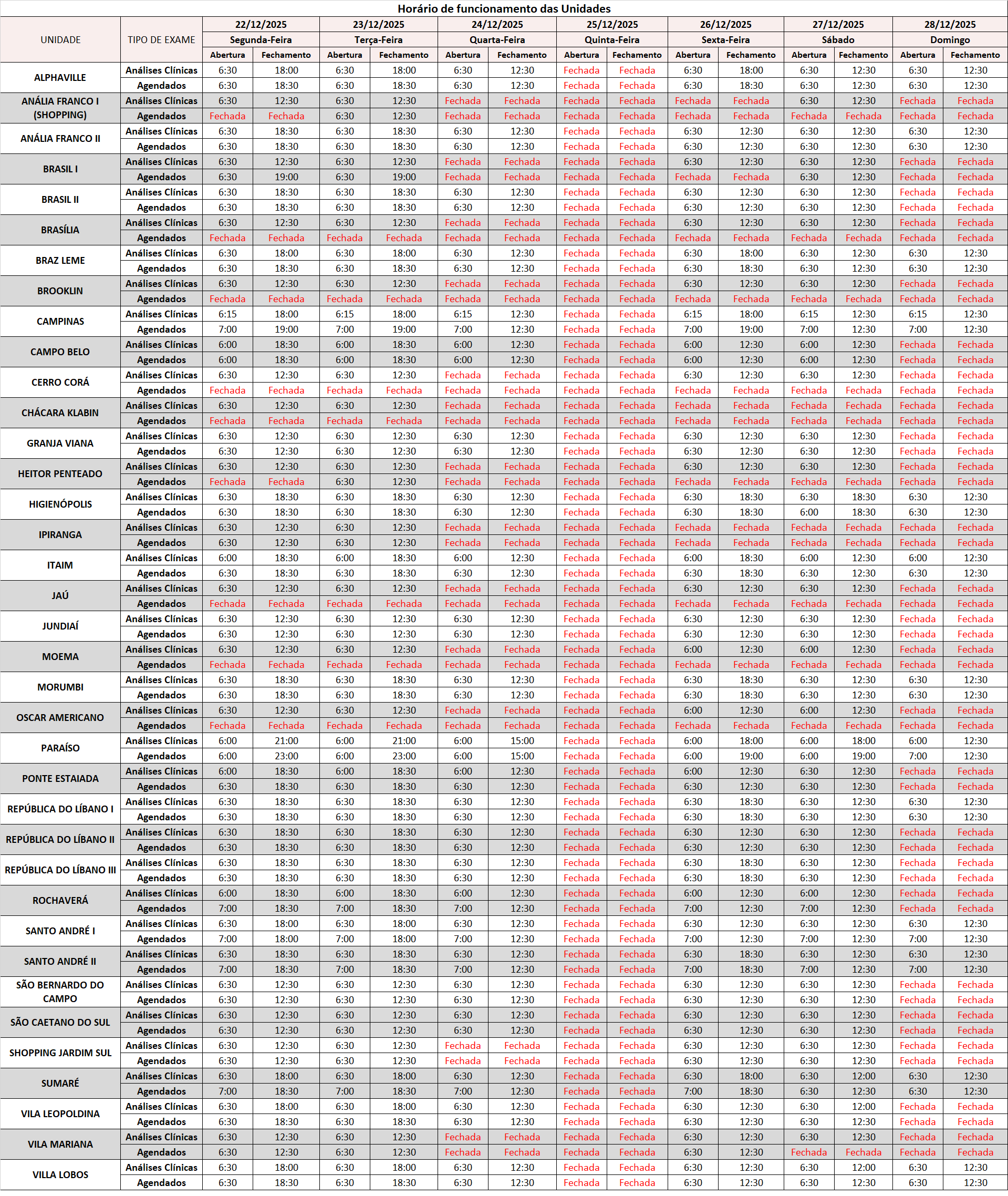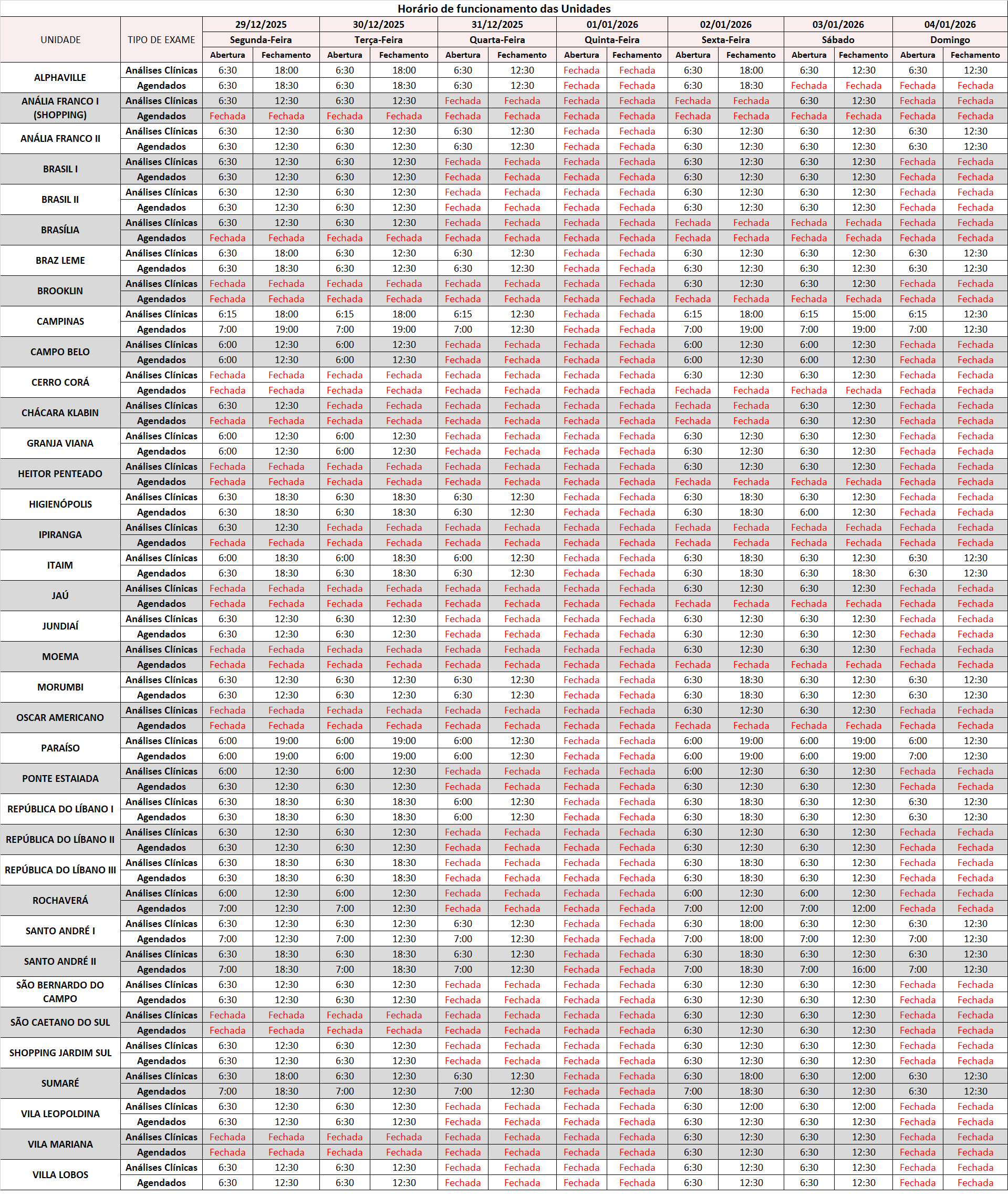 Confira os horários de funcionamento e coleta das unidades durante o final do ano.